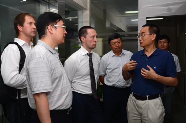 嵇院长陪同俄罗斯客人参观了展厅和重点实验室,并进行了亲切友好的会谈。嵇院长向俄罗斯客人介绍了研究院情况,重点介绍了科技成果转化方面的创新机制和国际技术转移的实践经验。双方对俄方重点科研项目进行了深入探讨,决定切实有效推进双方的合作进程。随后,俄方来到研究院培训中心,与刘伟强副院长、罗薇院长助理座谈,罗波夫介绍了俄罗斯在线教育和教育技术开发应用的情况和发展趋势,双方就合作领域与合作模式达成初步意向。
