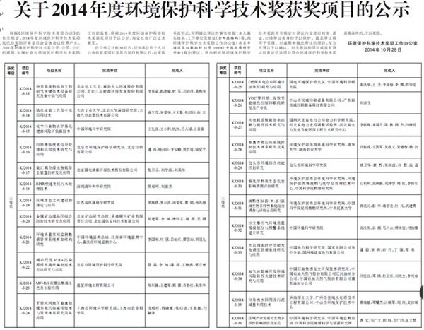 我院RPIR快速生化污水处理技术荣获2014年度环境保护科学技术奖