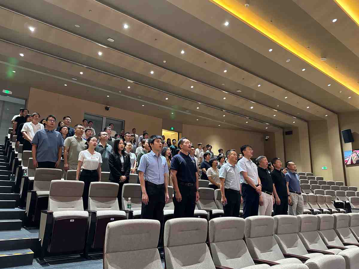 为弘扬伟大抗战精神,厚植爱国主义情怀,2025年9月3日上午,深圳清华大学研究院党总支在新大楼B栋负一楼报告厅组织全体党员集中观看纪念中国人民抗日战争暨世界反法西斯战争胜利80周年大会。民主党派人士及群众代表自发列席,现场共80余人肃静就座,共同见证庄严时刻。